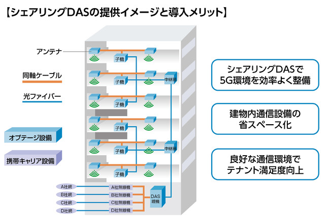 株式会社オプテージ(大阪市中央区)は、2024年4月25日(木)より、5G通信を中心としたビル・商業施設向け屋内インフラシェアリングサービス(シェアリングDAS※1)を提供開始し、建物内の良好なモバイル通信環境の実現を支援いたします。