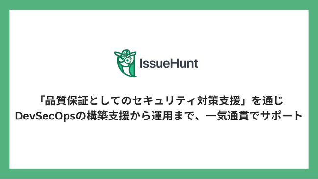 「プロダクトセキュリティ支援サービス」とは、バグバウンティ・プラットフォーム等を運営し、日々お客様のプロダクトの脆弱性対応に携わっているIssueHunt株式会社が提供する、DevSecOpsの構築及び運用支援サービスです。