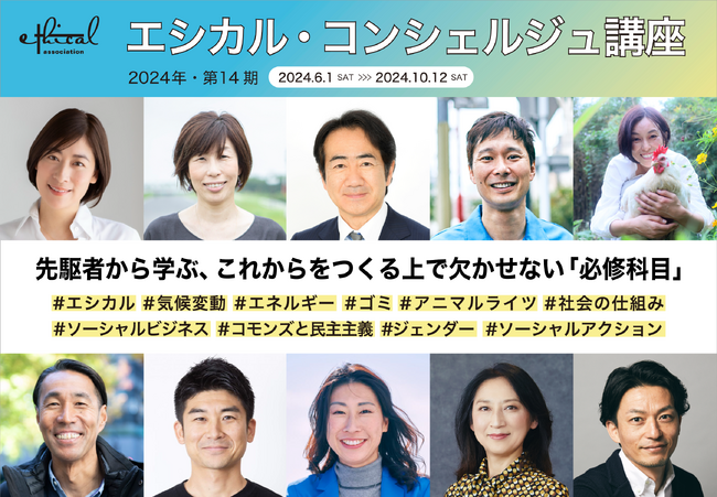 一般社団法人エシカル協会(東京都渋谷区、代表理事:末吉里花、以下「エシカル協会」)は、エシカルの本質について学び、考える教育プログラム「エシカル・コンシェルジュ講座 第14期」を2024年6月1日(土)より開講します。本講座は、気候変動、再生可能エネルギー、動物福祉、ジェンダー、SDGsなど様々な分野において、活動実績と専門性を備えた講師から、最新かつ具体的な考え方や視点を学ぶことができる全10回の連続講座です。