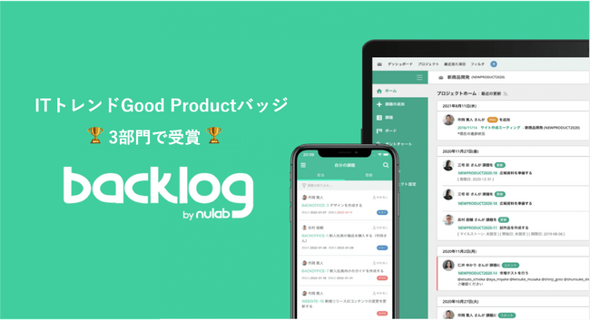株式会社ヌーラボ(本社:福岡県福岡市、代表取締役:橋本正徳、以下 ヌーラボ)が提供するプロジェクト管理・タスク管理ツール「Backlog」が、株式会社Innovation & Co. (本社:東京都渋谷区、代表取締役社長:齊藤和馬)が運営するIT製品の比較サイト「ITトレンド」において、ユーザー満足度が高い製品に贈られる「ITトレンドGood Productバッジ」を「プロジェクト管理 小規模・中規模・大規模部門」「タスク管理ツール部門」「タレントマネジメント 小規模・中規模・大規模部門」3部門で獲得しました。