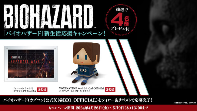 進学、就職、部署異動や転職など新天地で頑張るあなた。そんな未来へ向かって踏み出した皆様の“新生活”を「バイオハザード」が応援! 抽選で「バイオハザード」オリジナルグッズが当たる「バイオハザード」新生活応援キャンペーンを開催いたします。