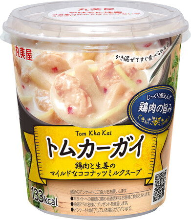 ・人気のタイ料理「トムカーガイ」がお湯を注いでかき混ぜるだけで、すぐ食べられる手軽で便利なカップ入りス