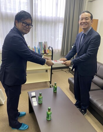 (左)株式会社ハヤマ 早山康弘社長 (右)敬和学園高等学校 小田中肇校長