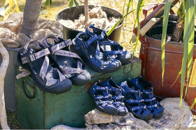 深緑のグラデーションの山々と白樺の群生、一面芝生の絨毯に囲まれた会場で開催されるNew Acoustic Campは今年15周年。いつもここには、アコースティックの心地よい音楽やキャンプインで遊び尽くす仲間達、ふかふかの芝生を駆け回る家族の笑顔が並んでいます。 2024年のコラボモデルはNew Acoustic Campのアートディレクターである守矢努氏が得意とするステンシルアートをウェビングテープに大胆に落とし込んだデザインで統一されたファミリーパックで発売されます。 メンズとウィメンズはKEENオリジナルのつま先を守るトゥ・プロテクションを搭載したストラップサンダル「ZERRAPORT II(ゼラポート ツー)」、キッズは、軽量で携帯にも便利なハイブリッド・シューズ「SEACAMP II CNX(シーキャンプ ツー シーエヌエックス)」、メンズはウッディーなストラップを組みあわせ、ウィメンズとキッズは藍色をメインに用いたお揃いの配色になっています。自然由来のカラーリングにNew Acoustic Campのイメージを象徴するレタリングが施されたこれらのシューズはキャンプサイトやフェスティバル会場で活躍してくれる一足です。親子リンクコーデをして足元からNACを家族みんなで楽しもう!