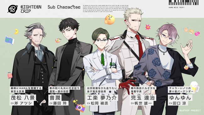 新作タイトル『18TRIP(エイティーントリップ)』観光区長たちを取り巻くサブキャラクターの立ち絵とキャストを公開!
