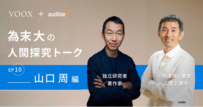 音声教養メディアVOOXは、2024年5月8日(水) より『熟達論』著者で元陸上選手の為末大さんが語る『為末大の人間探求トーク Ep.10 山口周編』の配信を開始しました。本企画は、『熟達論』を著し、熟達と人の成長をライフテーマとする元アスリートの為末大氏をホストに、独自の哲学を持つ経営者、及び文化人の方々と人間の成長をテーマに語り合う特別企画です。第10回は、独立研究者・山口周さんです。