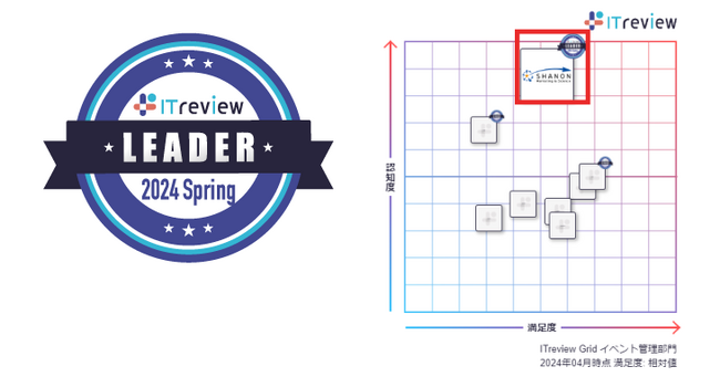シャノンの「SHANON MARKETING PLATFORM」が「ITreview Grid Award 2024 Spring」のイベント管理部門において最高位の「Leader」を19期連続受賞