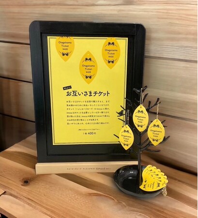 NPO法人0073が運営される「古民家カフェimoca」で導入が始まり、「お互いさまチケット」を利用することで、商品の金額からチケットに記載されている金額分割引される仕組みです。