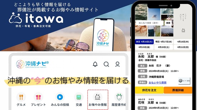 訃報案内サービス「itowa(いとわ)」が沖縄総合メディア「沖縄ナビ」と連携し、お悔やみ情報の提供を開始!