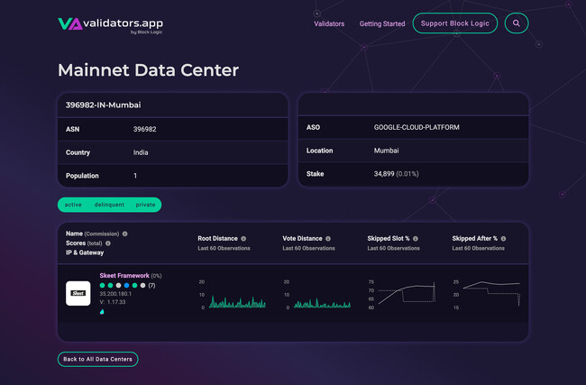 Solana メインネットデータセンター(インド・ムンバイ): https://www.validators.app/data-centers/396982-IN-Mumbai?locale=en&network=mainnet