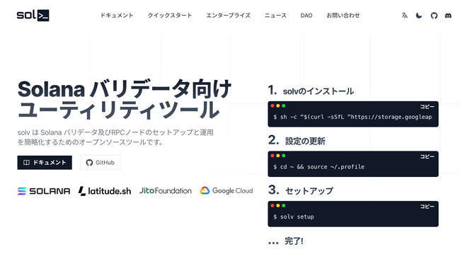 「solv」 は Solana バリデータ及び RPC ノードのセットアップと運用を簡略化するためのオープンソースツールです。