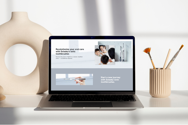 世界12か国で特許を取得している半導体内蔵ソーラー歯ブラシ「ソラデーシリーズ」のランディングページ構築、ショート動画の制作、SNS広告を実施。今後、インフルエンサーマーケティングの展開などを通じて、ブランドの信頼性向上と商品の可視性強化を目指します。