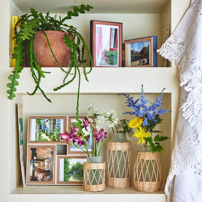 フォトフレーム2面 ¥1,760、フォトフレーム4面 ¥2,750、ラタンフロストベース 左から¥1,980、¥2,640、¥2,420