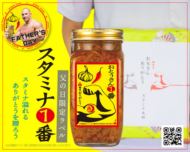 本キャンペーンは、2024年5月24日~6月10日までの予約期間中に公式通販サイトで「喜八郎商店」にてご注文いただいたお客様を対象に、お父さんに感謝の気持ちをおもしろく伝えるメッセージラベルが施された限定スタミナ1番を提供いたします。