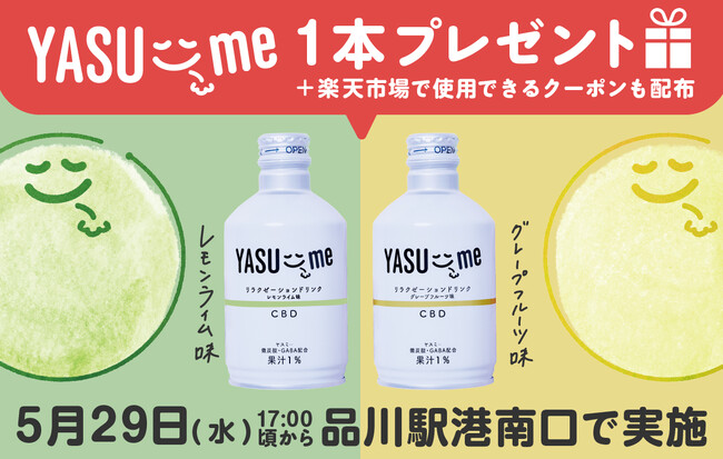 PIA株式会社(本社:東京都品川区 代表取締役:見原 博道)は、「さ、ひとヤスミーしましょ」をブランドメッセージにした、CBD配合リラクゼーションドリンク「YASU-me(ヤスミー)」の3000本無料配布第一弾を2024年5月29日(水)より品川駅港南口で(下記詳細)実施致します。