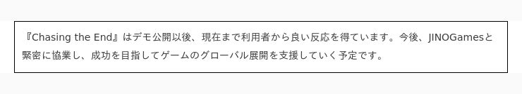 良質のゲームを発掘および支援するNEOWIZインディーゲームパブリッシング戦略の一環として今回の契約を締結し、JINOGamesのような個人開発会社はもちろんNEOWIZの競争力強化まで「ウィンウィン(Win-Win)効果」を期待しております。