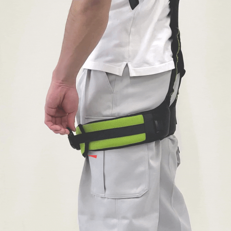 本体の一部にメッシュ素材を使用し、身体への接触面が少ないため長時間の使用でも蒸れにくくなっています。Lサイズの総重量は驚きの約450g*!500mlのペットボトルよりも軽く、長時間装着しても負担を感じにくいアシストスーツです。