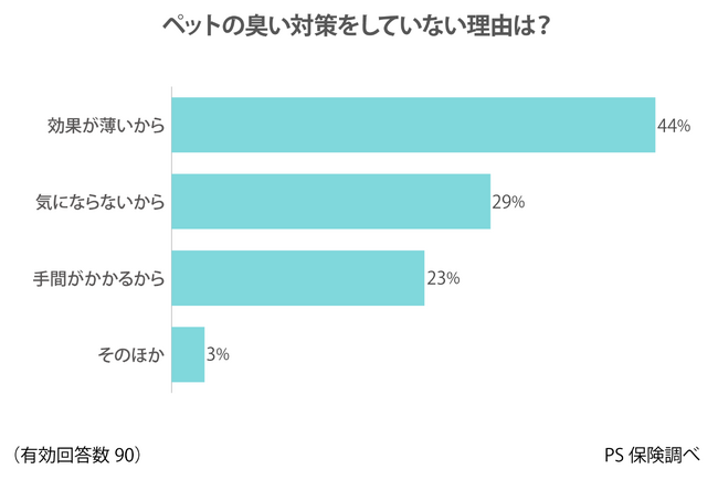 ペットの臭い対策を行っていない飼い主からは、その理由として「効果が薄いから」という回答が多く挙がりました(44%)。