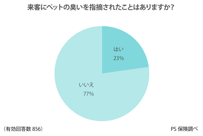 来客にペットの臭いを指摘されたことのある飼い主は23%。
