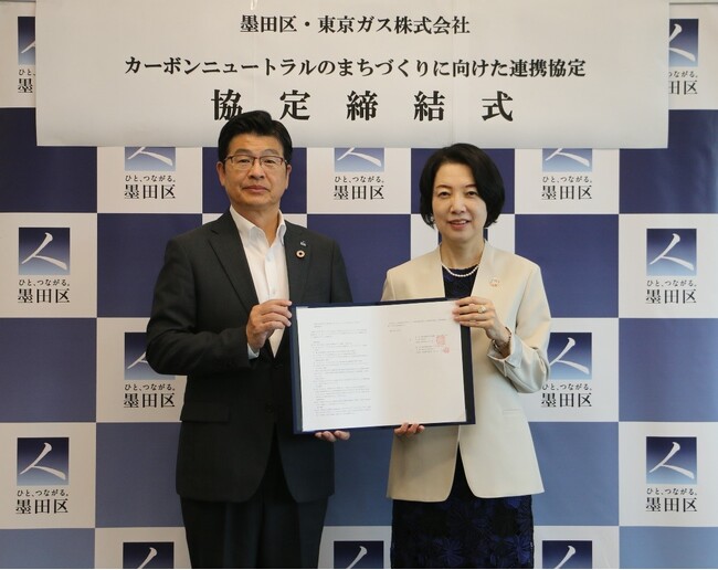 墨田区(区長:山本 亨)および東京ガス株式会社(社長:笹山 晋一)は、このたび、カーボンニュートラルのまちづくりに向けた連携協定(以下「本協定」)を締結しました。