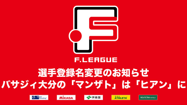 選手登録名変更のお知らせ|バサジィ大分の「マンザト」は「ヒアン」に【Fリーグ2024-2025 ディビジョン1】