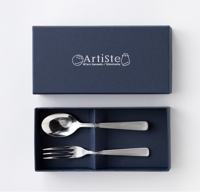 作中に登場する猫クロックムッシュが刻印されたカトラリーセット
