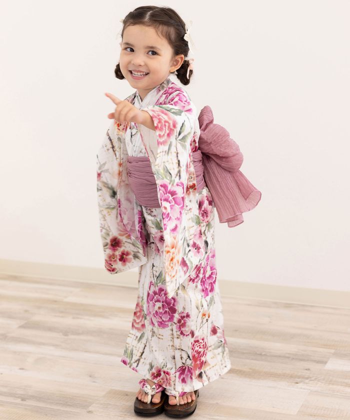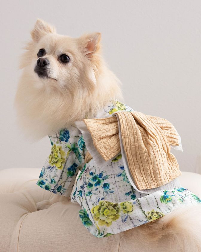 2024年新作「牡丹と薔薇」も同様に、ご家族でのおそろいが楽しめます。それぞれ同じデザインでありながら、柄の大きさは異なるので、からだの大きさに合わせて可愛く着こなすことができる仕上がりです。
