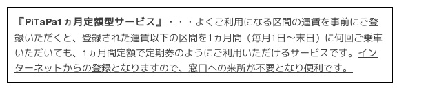○『PiTaPa 1ヵ月定額型サービス』の取扱いについて