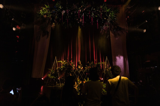 MFSが初のワンマンライブ『MFS 1st Full Album 「COMBO」ONEMAN LIVE』を6月28日に東京・WWWで開催した。会場に入ってすぐ視界に飛び込んできたのは、ステージ上方から吊るされた巨大なフラワーアレンジメント。DJブースもトロピカルな緑と花で飾り付けられ、『COMBO』のジャケットの世界観を拡大したようなステージが作られていた。