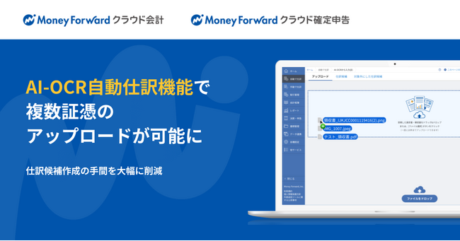 株式会社マネーフォワードは、『マネーフォワード クラウド会計』、『マネーフォワード クラウド確定申告』の「AI-OCR自動仕訳機能」において、証憑の一括アップロード・仕訳候補作成が可能になりました。