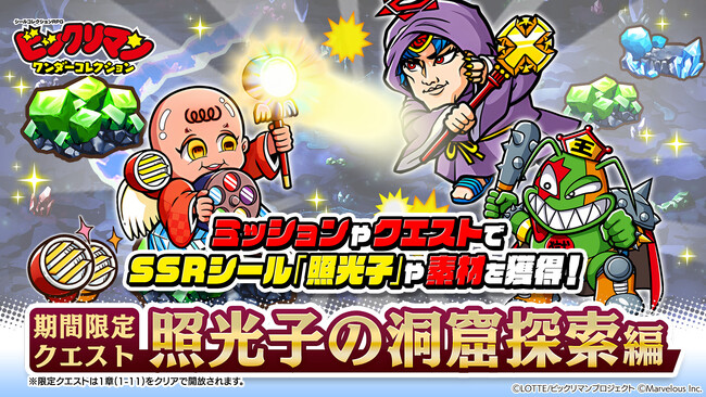 株式会社マーベラス(代表取締役社長:佐藤 澄宣/所在地:東京都品川区)は、シールコレクションRPG『ビックリマン・ワンダーコレクション』にて期間限定クエスト「照光子の洞窟探索編」「スーパーデビルの洞窟作戦編」が2024年7月11日に開始されたことをお知らせいたします。また併せて「悪逆無道の偽神ガチャ」、ダメージチャレンジ「フフフッフ合格 0点タタリ・鈍魔」を開始いたしました。
