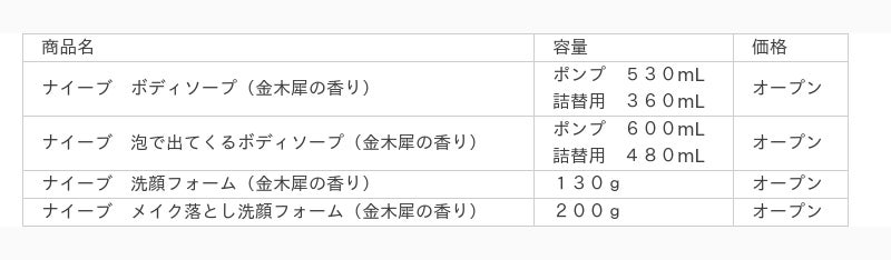 洗う成分100%植物生まれの「ナイーブ」から「金木犀の香り」のボディソープ&洗顔フォーム数量限定発売!