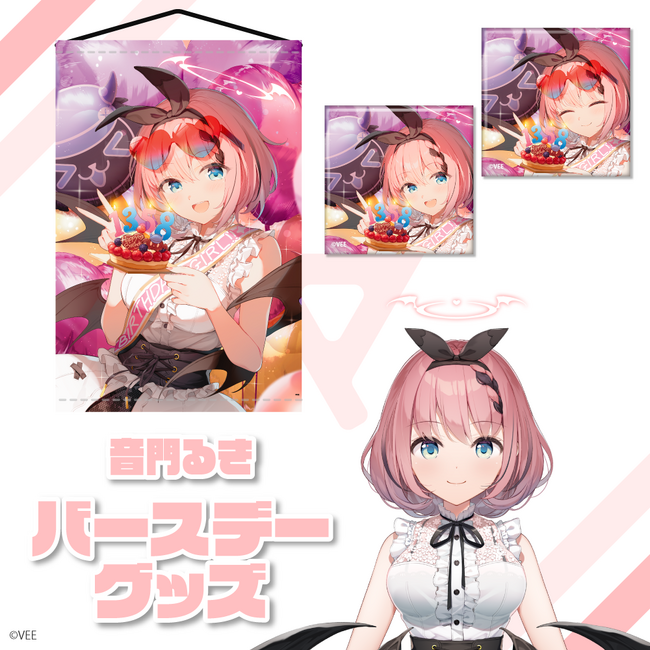 「音門るき」のバースデーグッズは、B2タペストリーとスクエア缶バッジ!公式オンラインショップ「VEE Official Shop」にて受注販売!