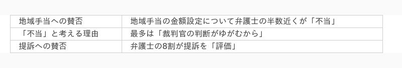 1、地域手当の金額設定、弁護士の半数近くが「不当」