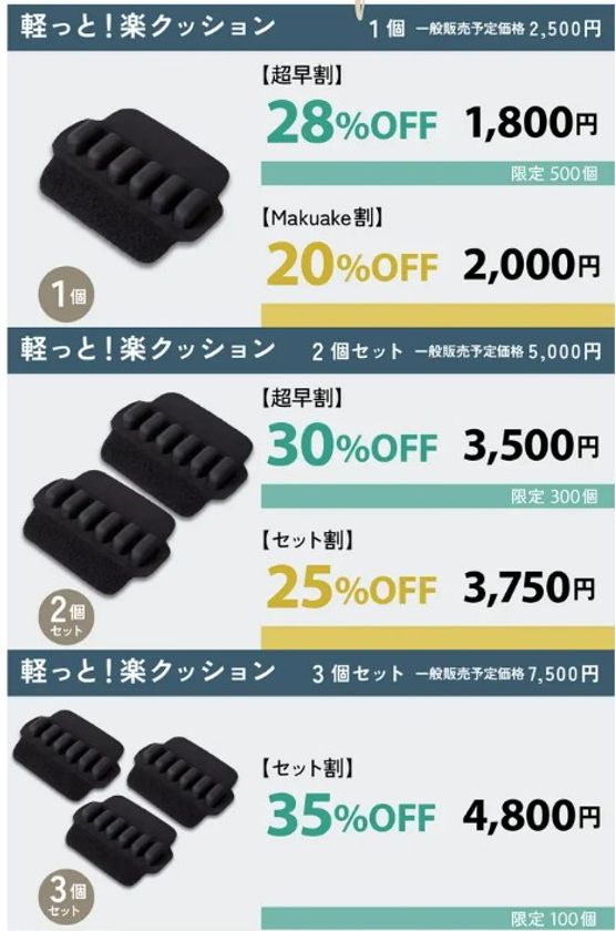 先行販売特典として、軽っと!楽クッション3個セットが最大35%OFFでご購入いただけます。