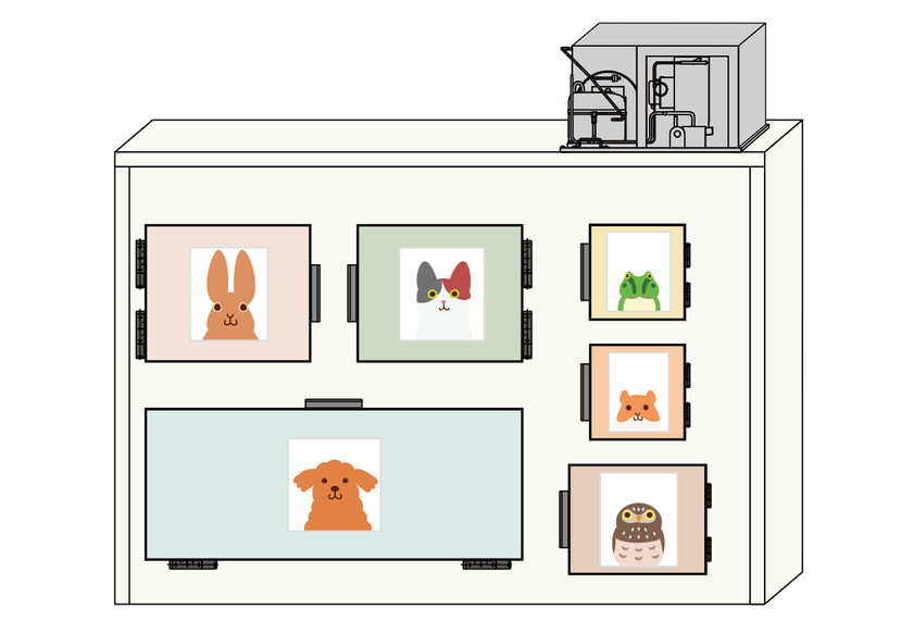 1. それぞれの生きものの大きさに合わせた扉・ラックを自由に設置できます。