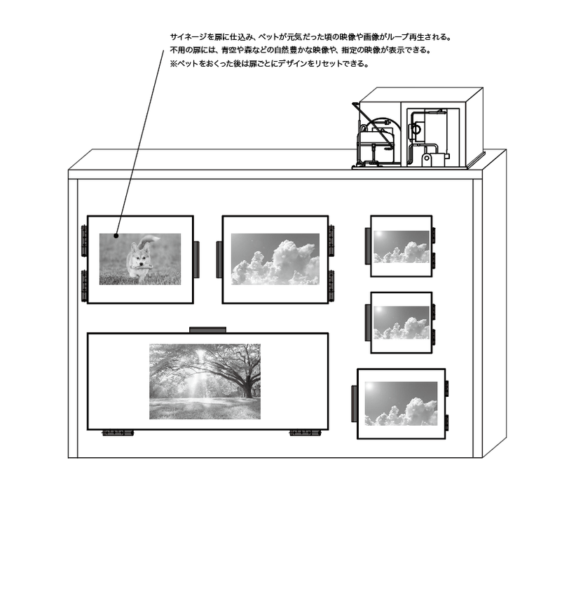 「おくりこ pet扉サイネージ提案」の線画イラスト