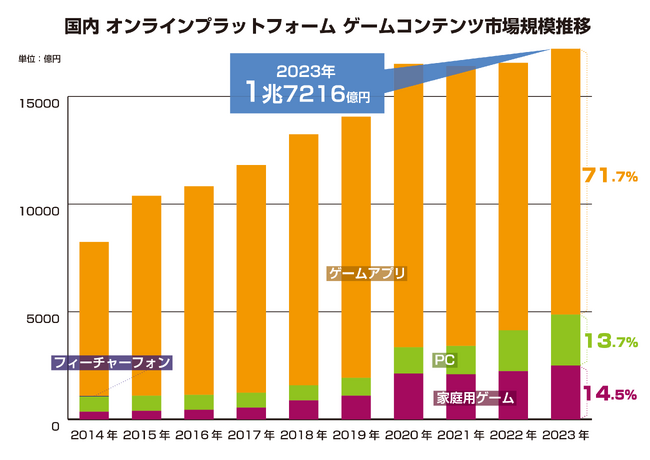 国内オンラインゲームコンテンツ市場規模は前年比3.9%増の1兆7216億円