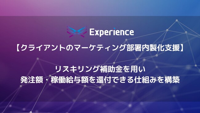 (株) Experienceがクライアントのマーケティング部署内製化支援において、リスキリング補助金を用い発注額・稼働給与額を還付できる仕組みを構築