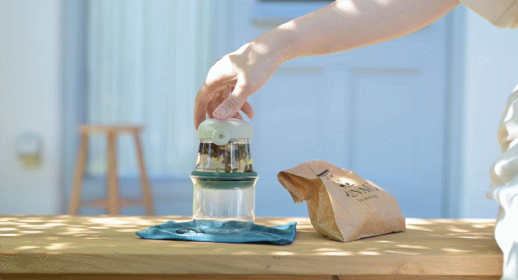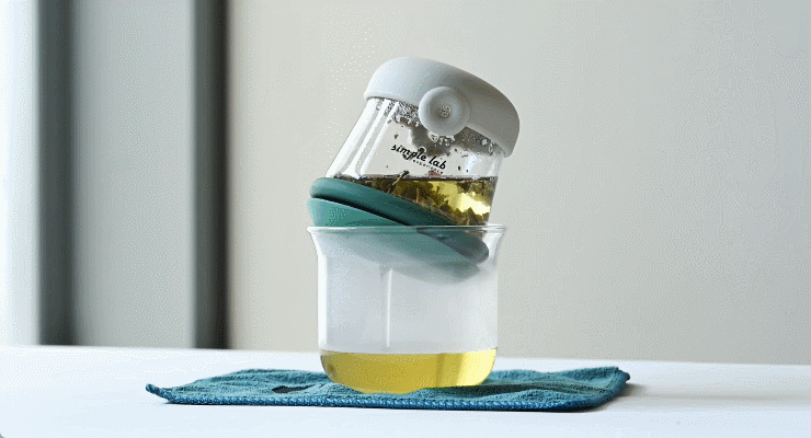 ”AIRO-mini"の抽出用ポットは無色透明。お湯を注ぐと茶葉からの美味しいお茶が抽出されているか
