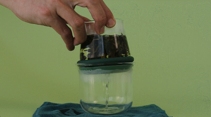 お茶はお好きな濃さで~ワンアクション傾けるだけでストンと落ちるエアロックシステム