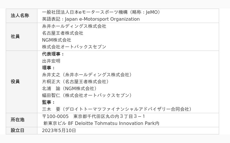 一般社団法人日本eモータースポーツ機構(JeMO)法人概要
