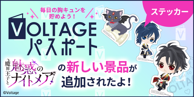 毎日の胸きゅんが貯まる!無料会員ポイントサイト「VOLTAGEパスポート」(以下、「ボルパス」)にて「魔界ナイトメア」に登場する14キャラクターと「ロビン」のステッカーを新しく追加いたしました。