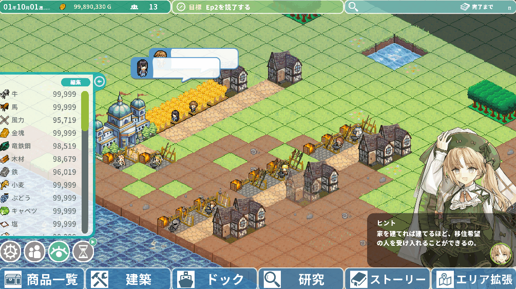 港町ポルタマレーに住人を招致したら、各地にさまざまな施設を建造し、輸出品を生産しましょう。輸出品は街に建造した施設で、必要な素材を揃えると生産できます。入手難易度の高い商品は高値で取引されます。