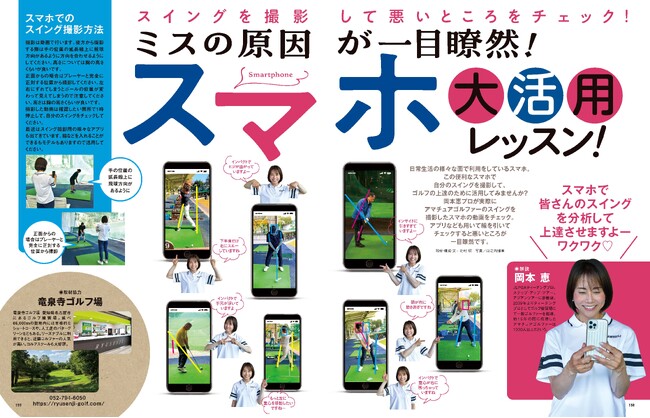 実用特集としてはミスの原因が一目瞭然となる「スマホ大活用レッスン」スイングの撮影の仕方から、症例別の改善レッスンまで網羅。
