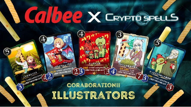 ブロックチェーンゲーム「クリプトスペルズ」を運営するCryptoGames株式会社(東京都渋谷区、代表取締役:小澤 孝太)は、カルビー株式会社(本社:東京都千代田区、代表取締役社長兼CEO:江原信、以下「カルビー」)および、株式会社博報堂キースリー(本社:東京都港区、代表取締役社長:重松俊範、以下、博報堂キースリー)と共に、カルビーの「じゃがりこ」「かっぱえびせん」とクリプトスペルズのコラボNFT販売が決定したことをお知らせ致します。