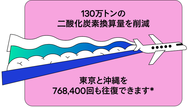Back Marketで購入されたリファービッシュ品のデジタルデバイスが地球環境にもたらした効果は、2014年創業以来、二酸化炭素換算量(CO2e)に換算して130万トンもの排出量の削減に及びます。この数字は、航空機で東京と沖縄を768,400回往復する際の二酸化炭素排出量に匹敵します。リファービッシュ品のデジタルデバイスを選ぶユーザーの数が増えれば増えるほど地球環境に与える負荷がそれだけ減少し、天然資源を守ることに繋がります。2023年の1年間においても、Back Marketがリファービッシュ品(整備済製品)の利用を促進したことで38万2,000トン