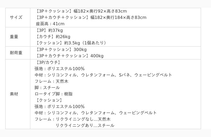 本製品はメインとなる3Pの座面パーツにカウチパーツ有り/無しを選択可能です。3Pパーツの座面は幅182cm×奥行92cmとワイドなサイズなため十分にくつろぐことが可能ですが、そこに幅92cm奥行92cmのカウチパーツを追加することで、よりゆったりとご使用いただくことができます。スペースに余裕のある方や3~4人以上での使用を想定している方はカウチパーツ有のセットをご使用いただくことで広々と快適にくつろぐことが可能です。
