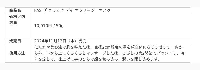 株式会社シロク(本社:東京都渋谷区、代表取締役社長:飯塚勇太)は、発酵エイジングケア※1 ブランド「FAS(ファス)」の新製品として、朝のためのマッサージマスクを2024年11月13日(水)より発売いたします。