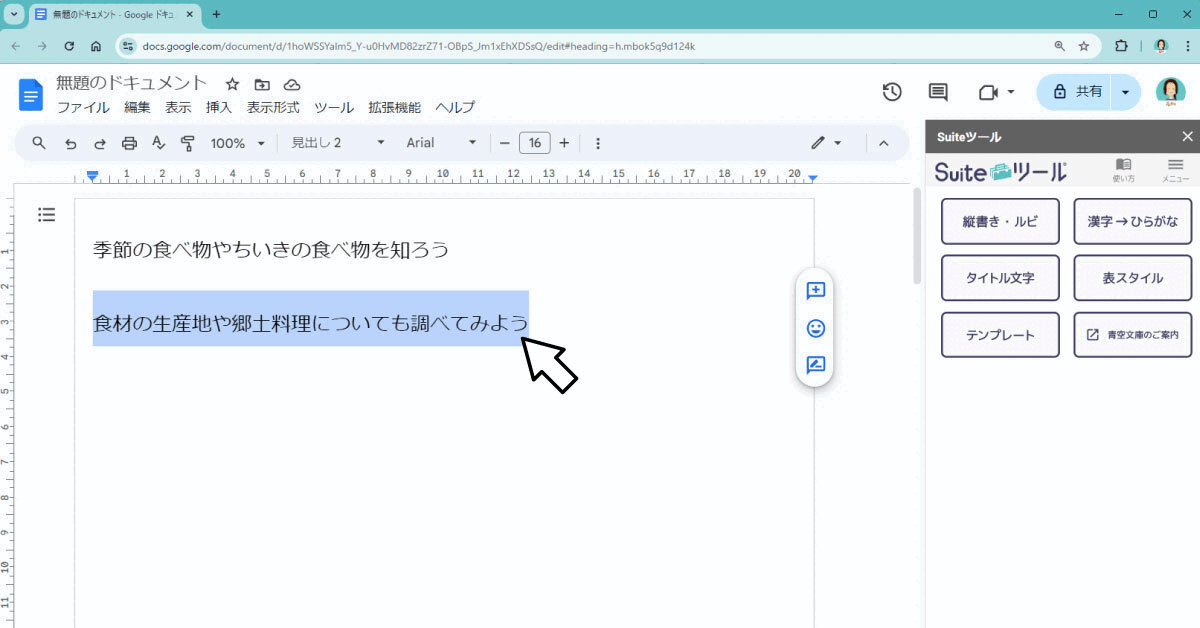 Suiteツール新機能「漢字→ひらがな」:Google ドキュメントで作成した文章を対象学年向けに一括変換 - 漢字に⦅よみがな⦆を挿入